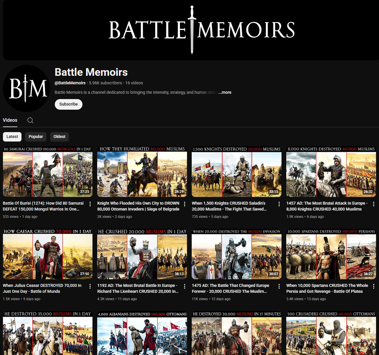 Battle Memoirs demonstrates that faceless long-form historical content can attract a highly engaged audience, monetize effectively, and scale easily with similar faceless channels on different periods or conflicts