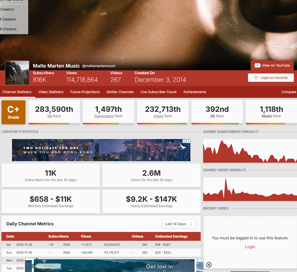 Quick Stats (SocialBlade Overview)