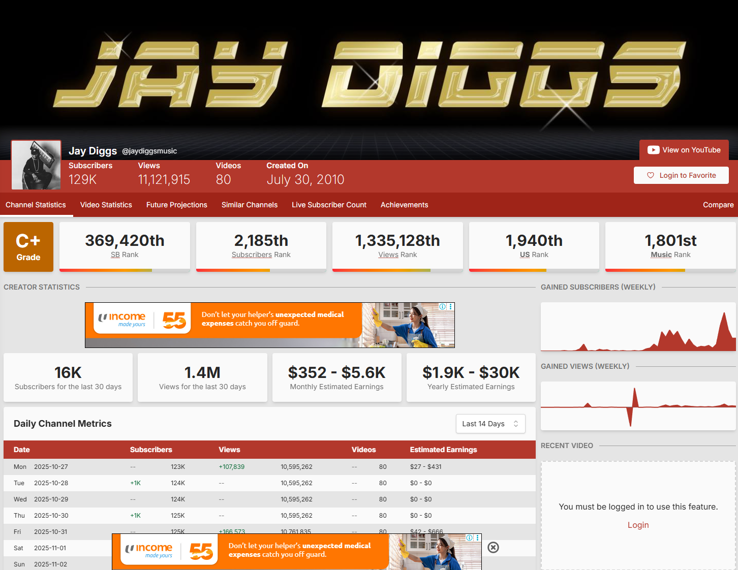 Jay’s channel now averages 1.4M monthly views, earning an estimated $352–$5.6K/month (Social Blade).