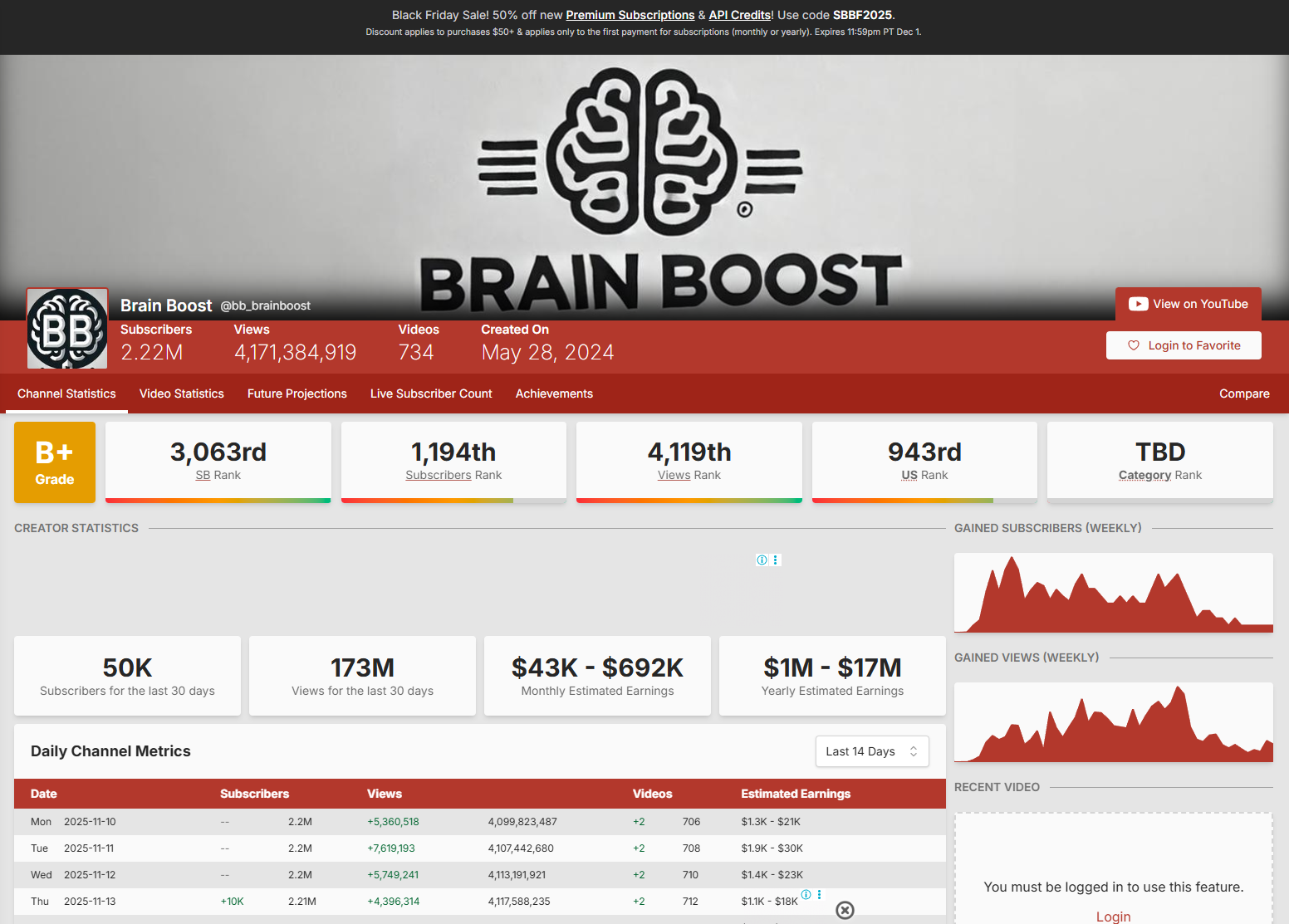 SocialBlade says: