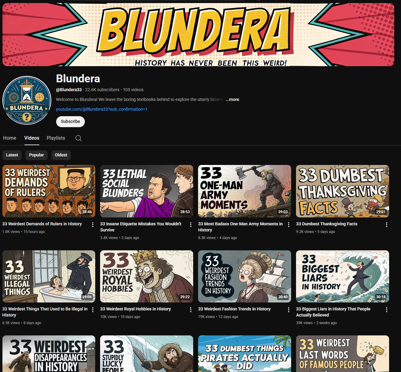 Meet Blundera — the perfectly engineered faceless channel formula hiding in plain sight.