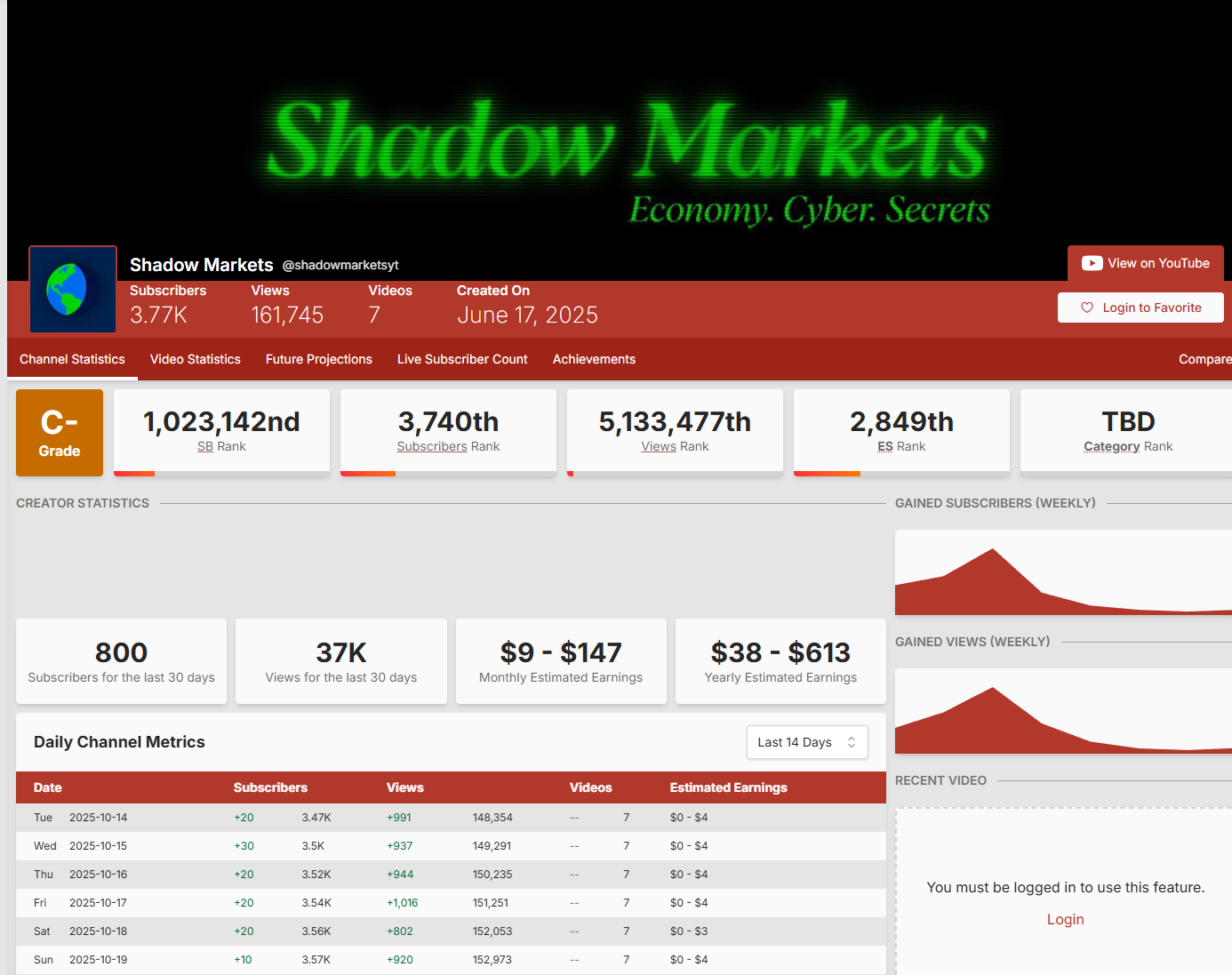 If you’re fascinated by economic hacking, black markets, and unconventional finance, ShadowMarketsYT is the perfect example of a faceless YouTube channel doing it right. Launched on June 17, 2025, the channel has rapidly built a niche audience interested in the hidden corners of global markets, proving that quality research and storytelling can pay off fast.