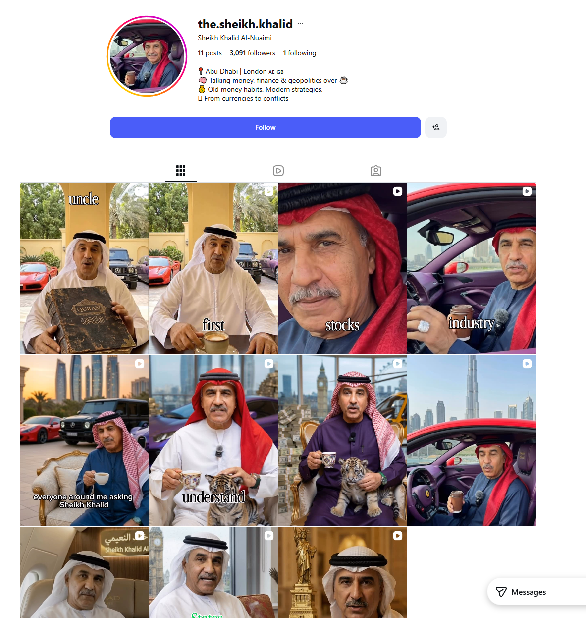 @the.sheikh.khalid shows how AI-generated personas can become powerful content engines—combining identity, authority, and storytelling into a scalable faceless brand.