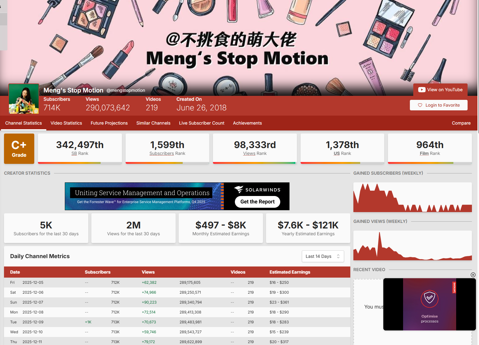 Channel Snapshot (Case Study: Meng’s Stop Motion)