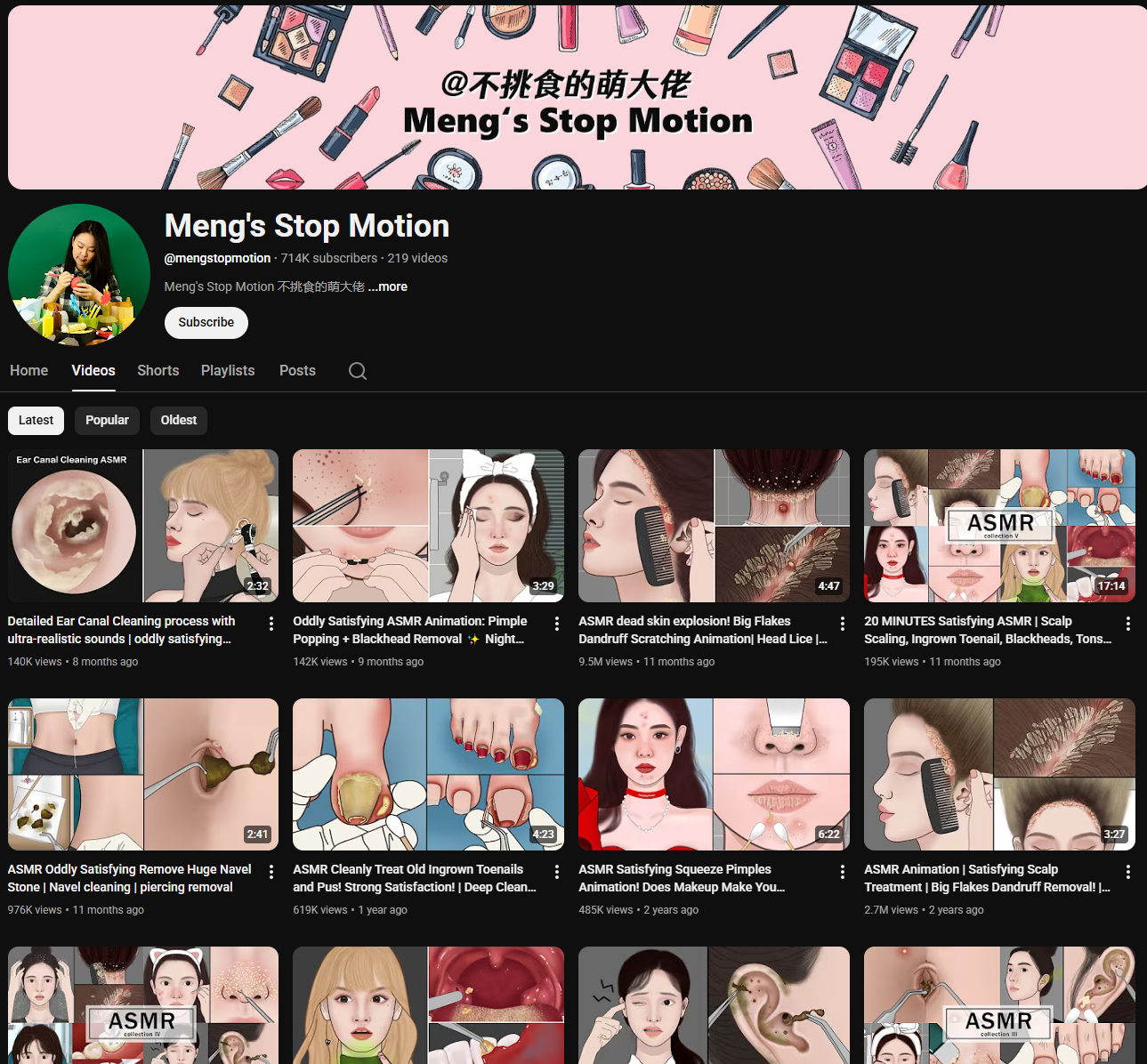 In ASMR + medical curiosity niches, evergreen content outlives the creator.