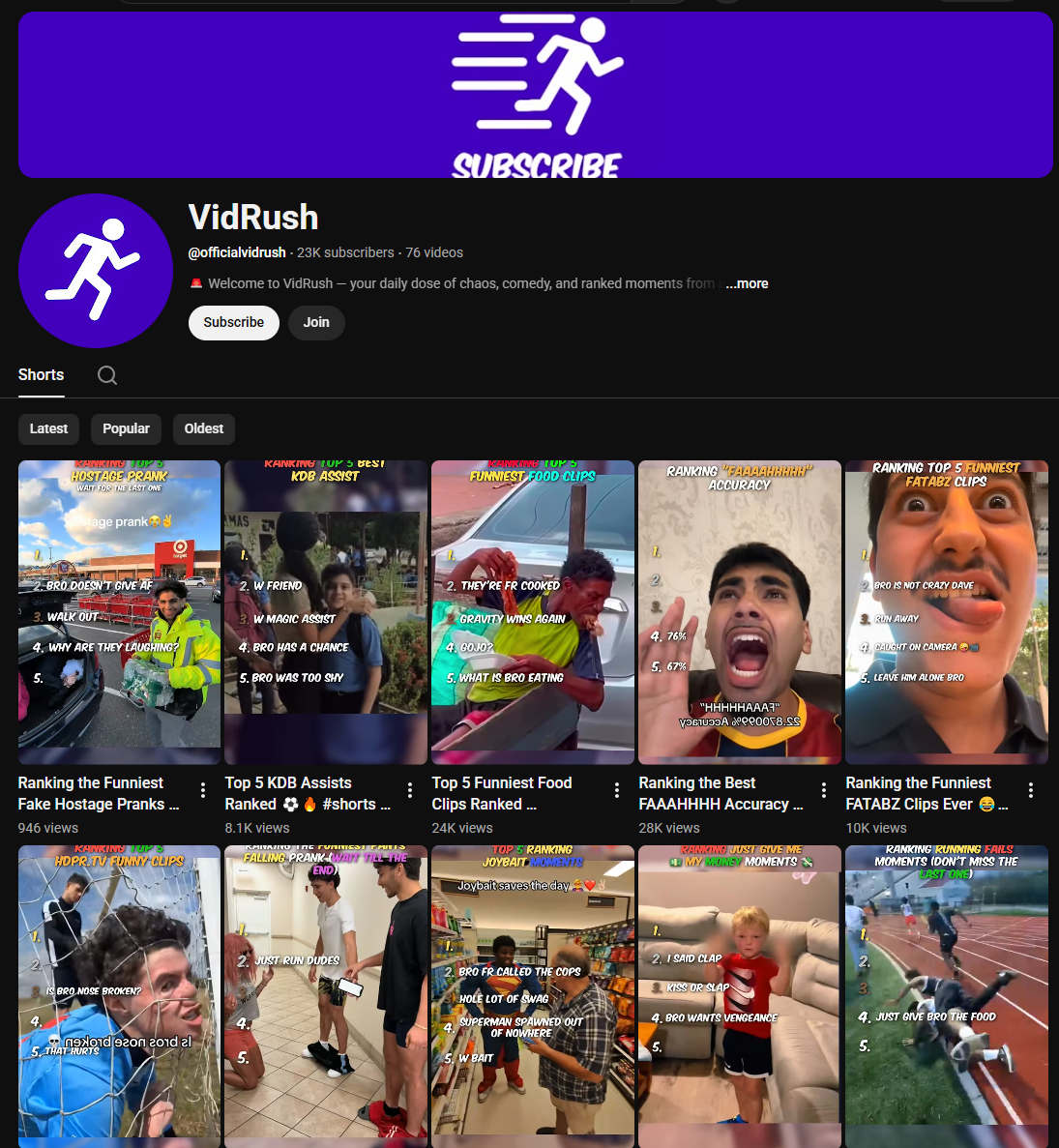 Meanwhile, channels like VidRush quietly turn internet noise into a machine.