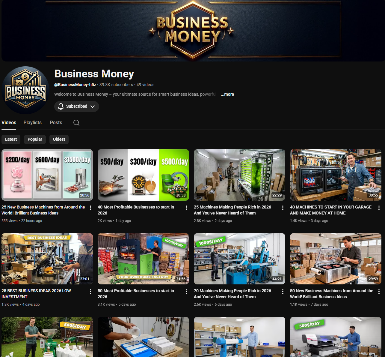 They just tapped into business education + machine content — one of the highest RPM niches on YouTube.