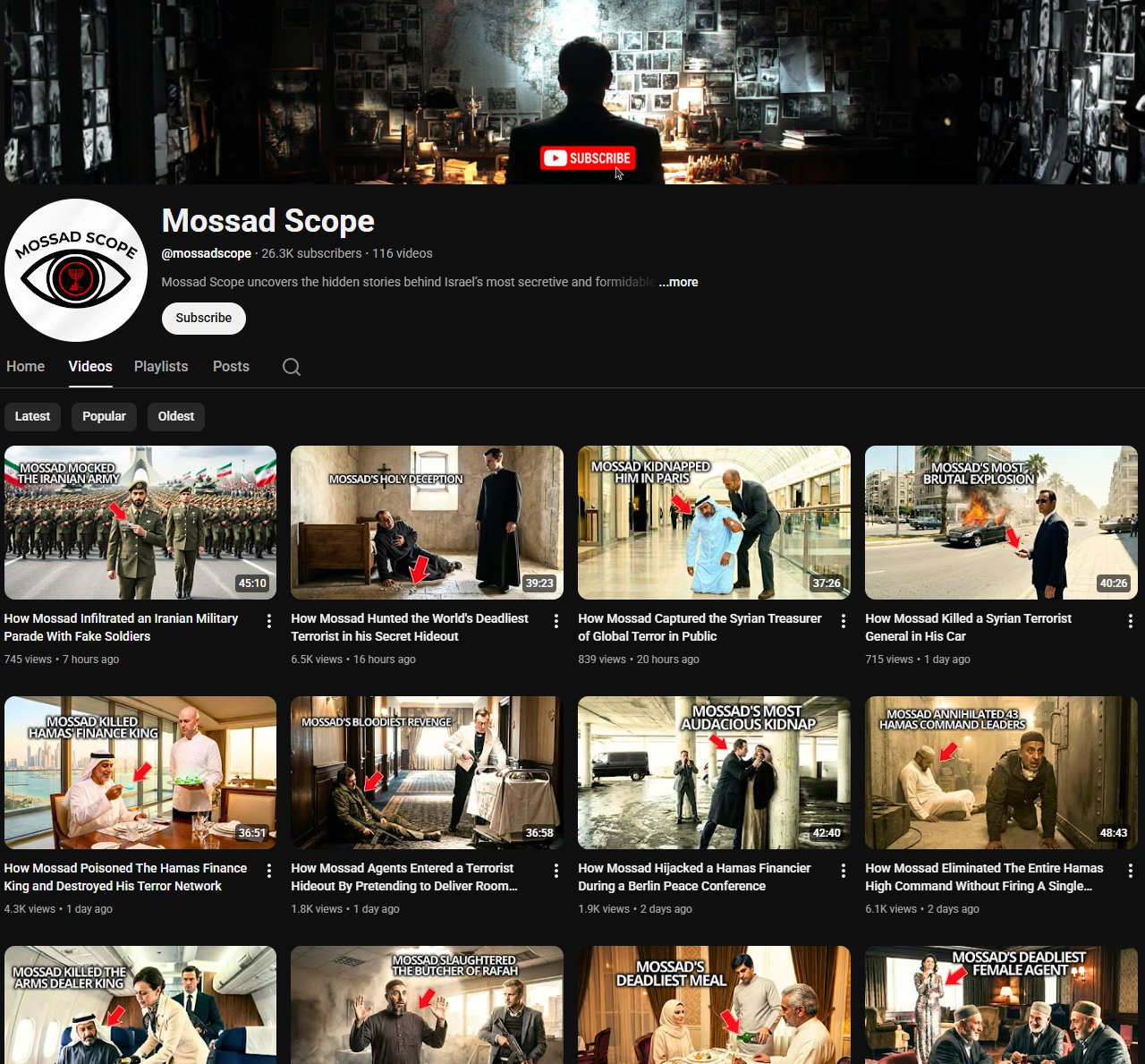 Channels like Mossad Scope package real-world intelligence operations into 30–60 minute cinematic narratives, designed to feel like a Netflix spy documentary — but entirely faceless and scalable.